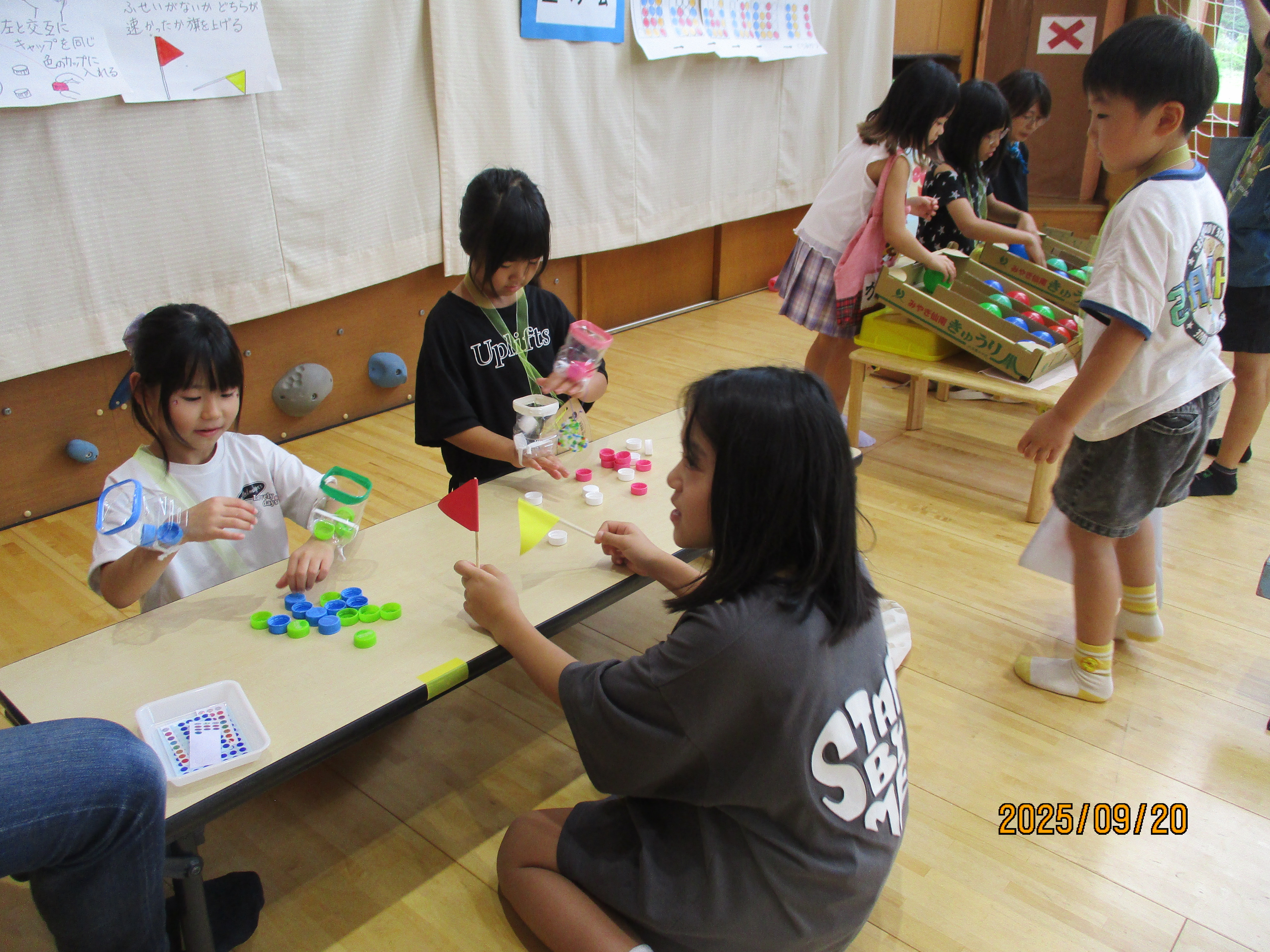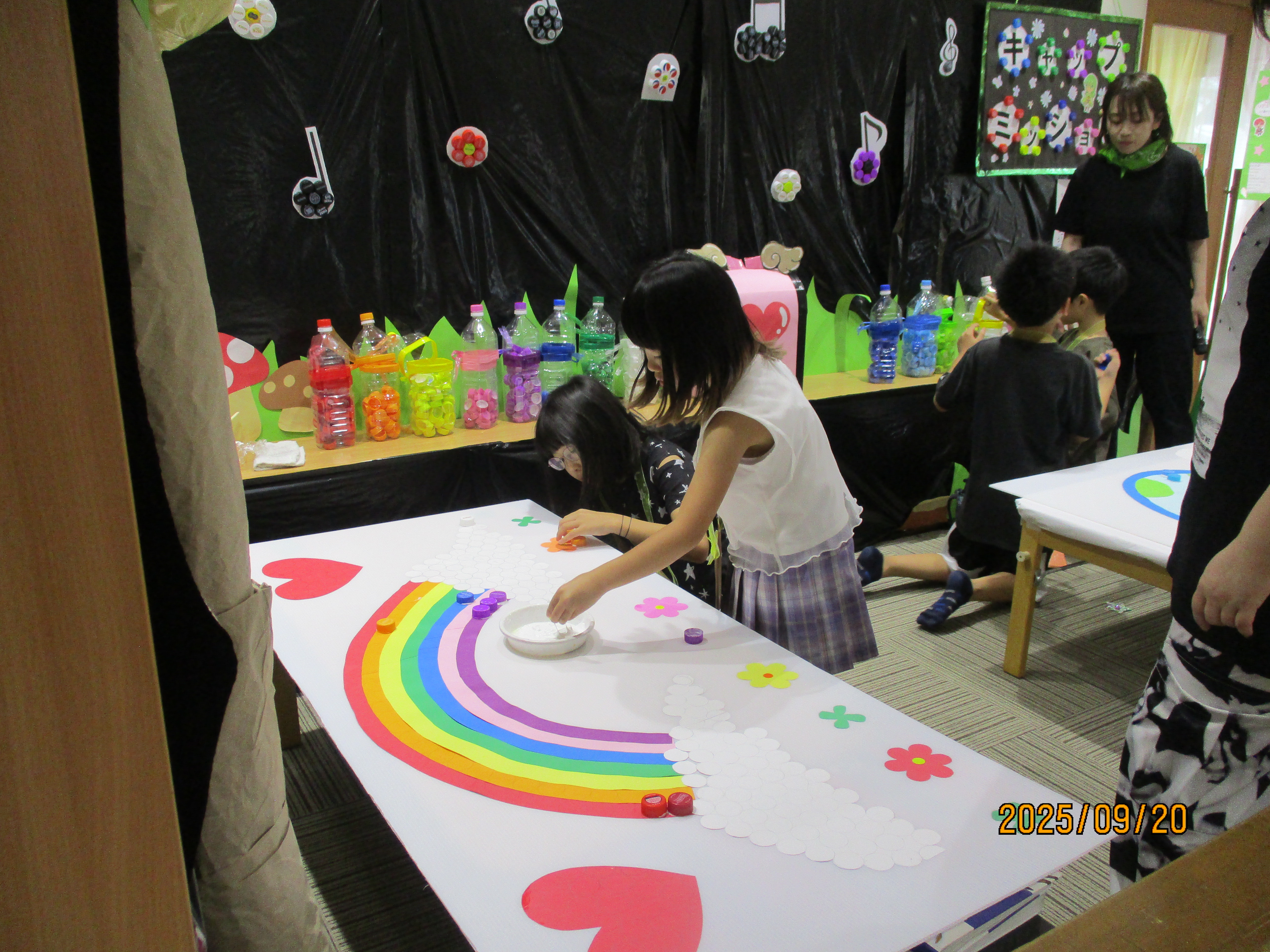 リデュース・リユース・リサイクルの3Rを意識して、物を繰り返し使う、使い終わったものを再利用するなど、こども達の身近にある廃材を使った遊びを提供しました。