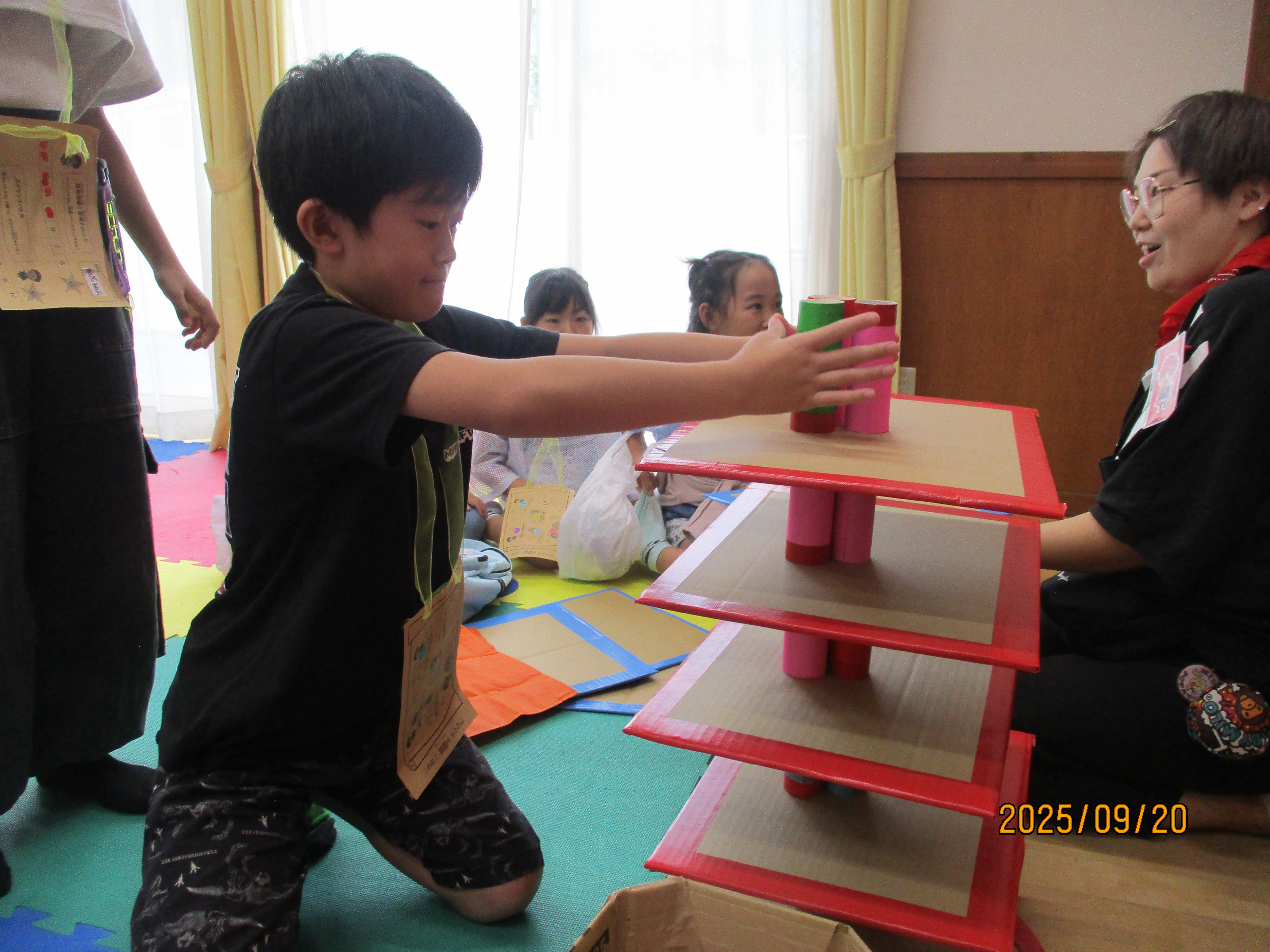 冒険の地図を持ちながら、さまざまなチャレンジに何度も挑戦して、元気に楽しく参加するこども達の姿が印象的でした♬