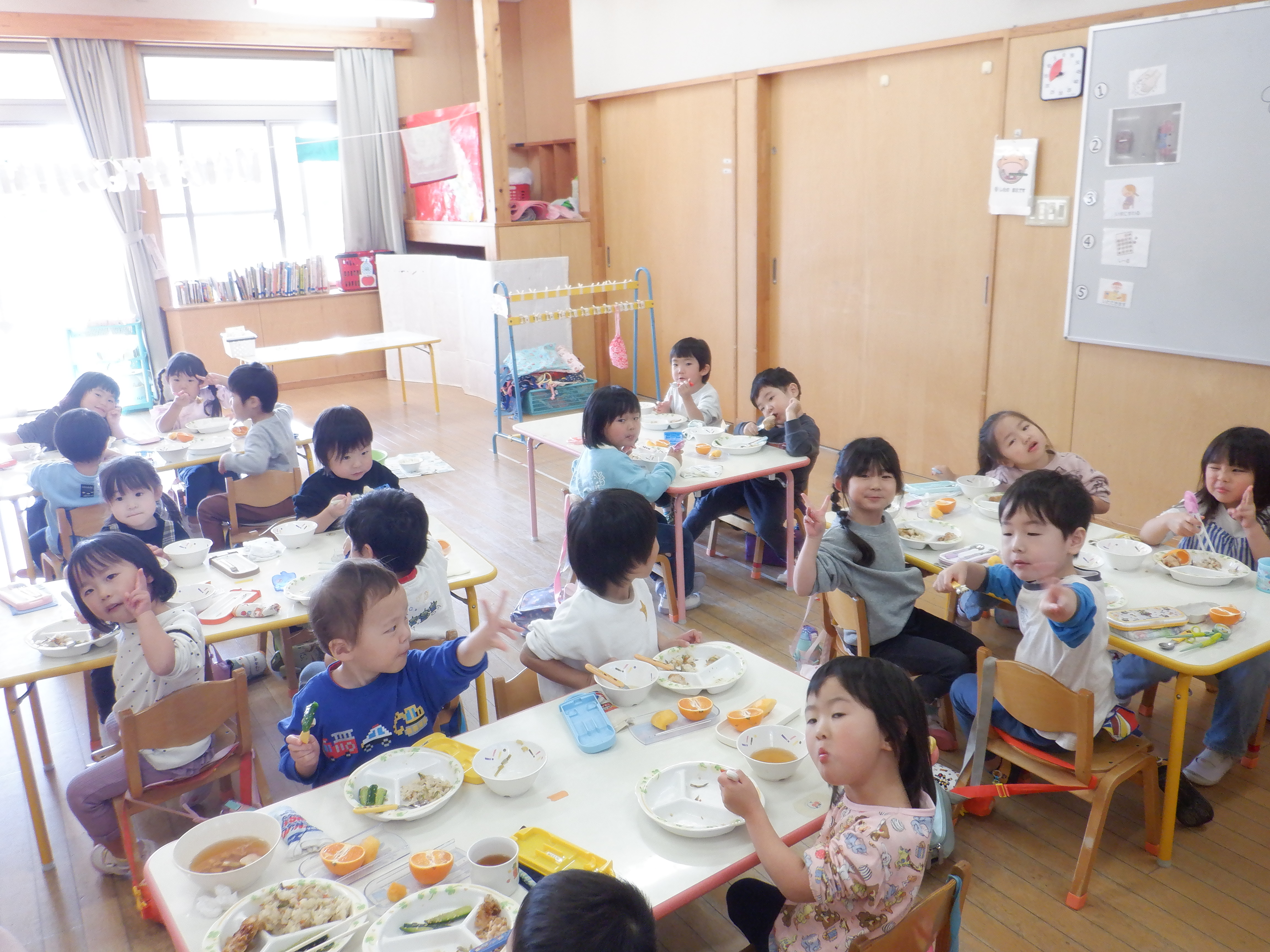 花麩のはいったすまし汁やからあげ、五目ご飯を、とても喜んで食べていた子どもたちでした。
